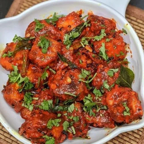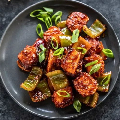 a bold Indo-Chinese dish with crispy paneer cubes stir-fried in a spicy.