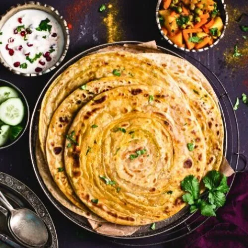 a crispy, layered flatbread with a flaky texture and good very nice tasty .