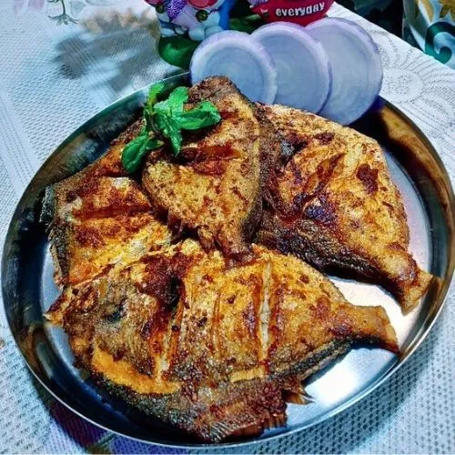 a savory, crispy-fried rohu fish seasoned with taste and spices.