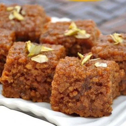 a traditional Indian sweet made from a blend of chickpea flour, ghee, and sugar, often enjoyed for its rich, nutty flavor.